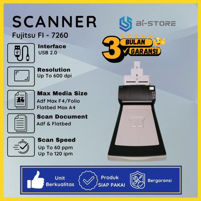 Dengan performa cepat, desain kokoh, serta kemudahan penggunaan, Fujitsu Fi-7260 menjadi pilihan ideal untuk kantor modern yang membutuhkan scanner F4 handal dan siap pakai setiap saat.